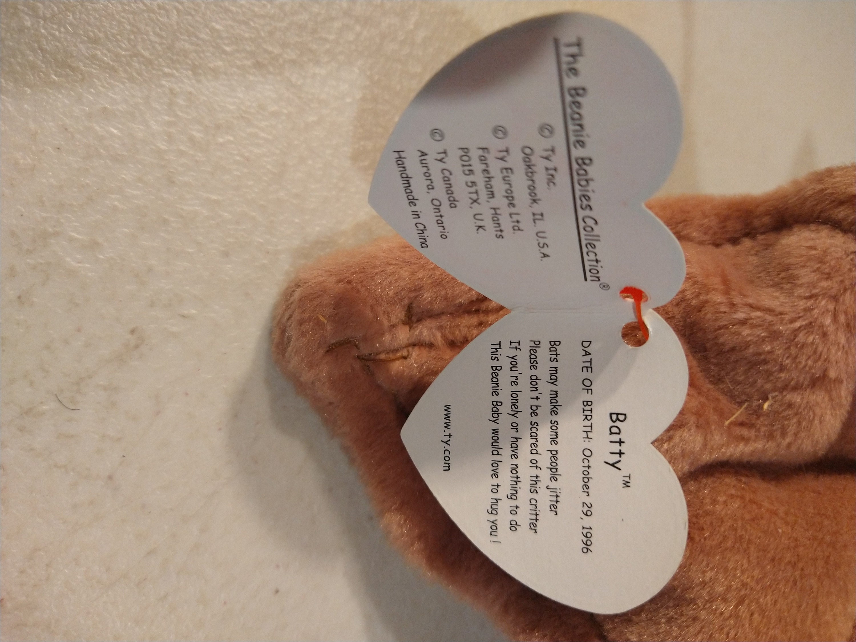 This is Batty the Halloween Bat from the TY Beanie Babies line. Batty is brand new. Batty will be shipped the same day, and can be shipped anywhere in the world. Batty ships for free in the United States.