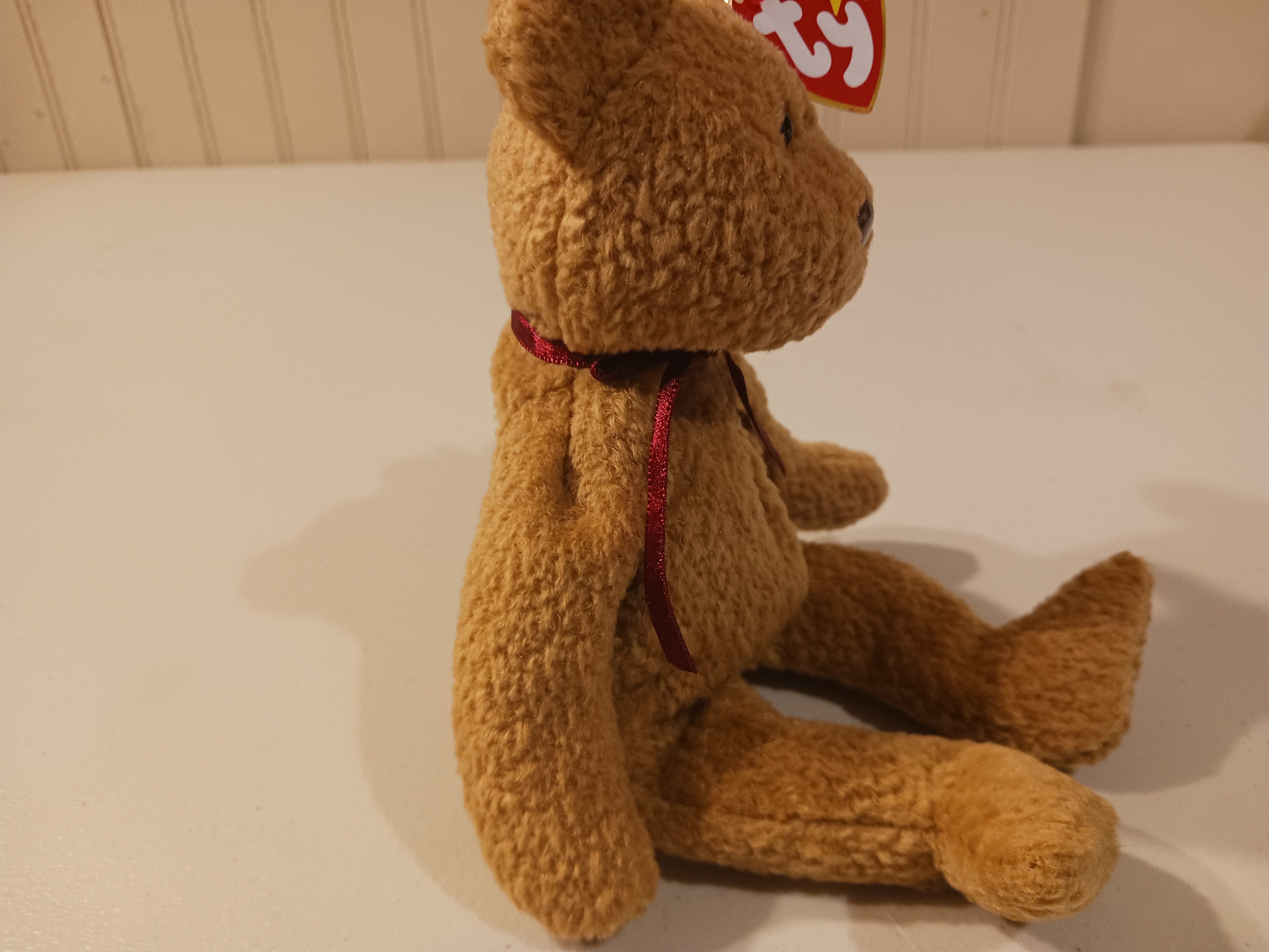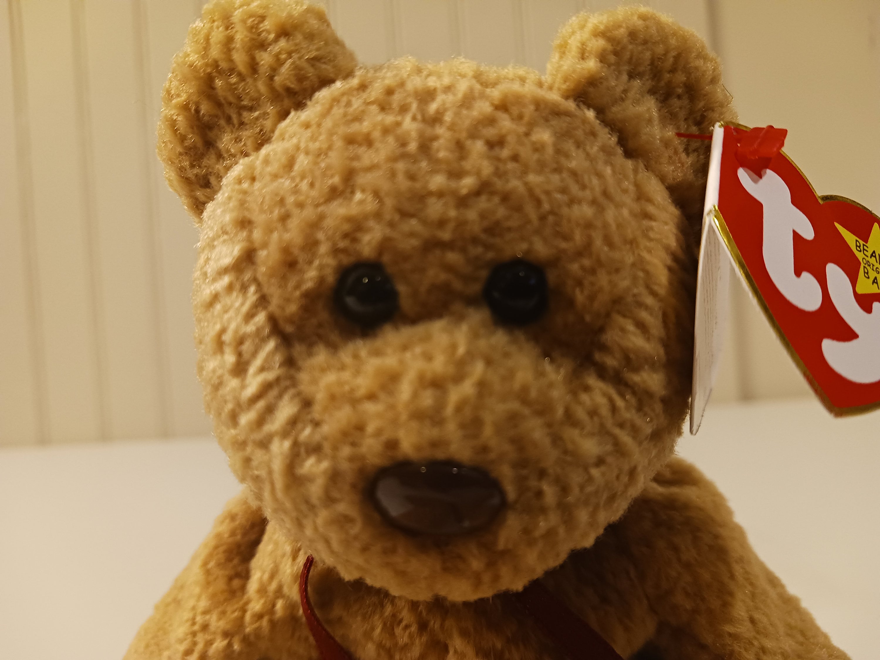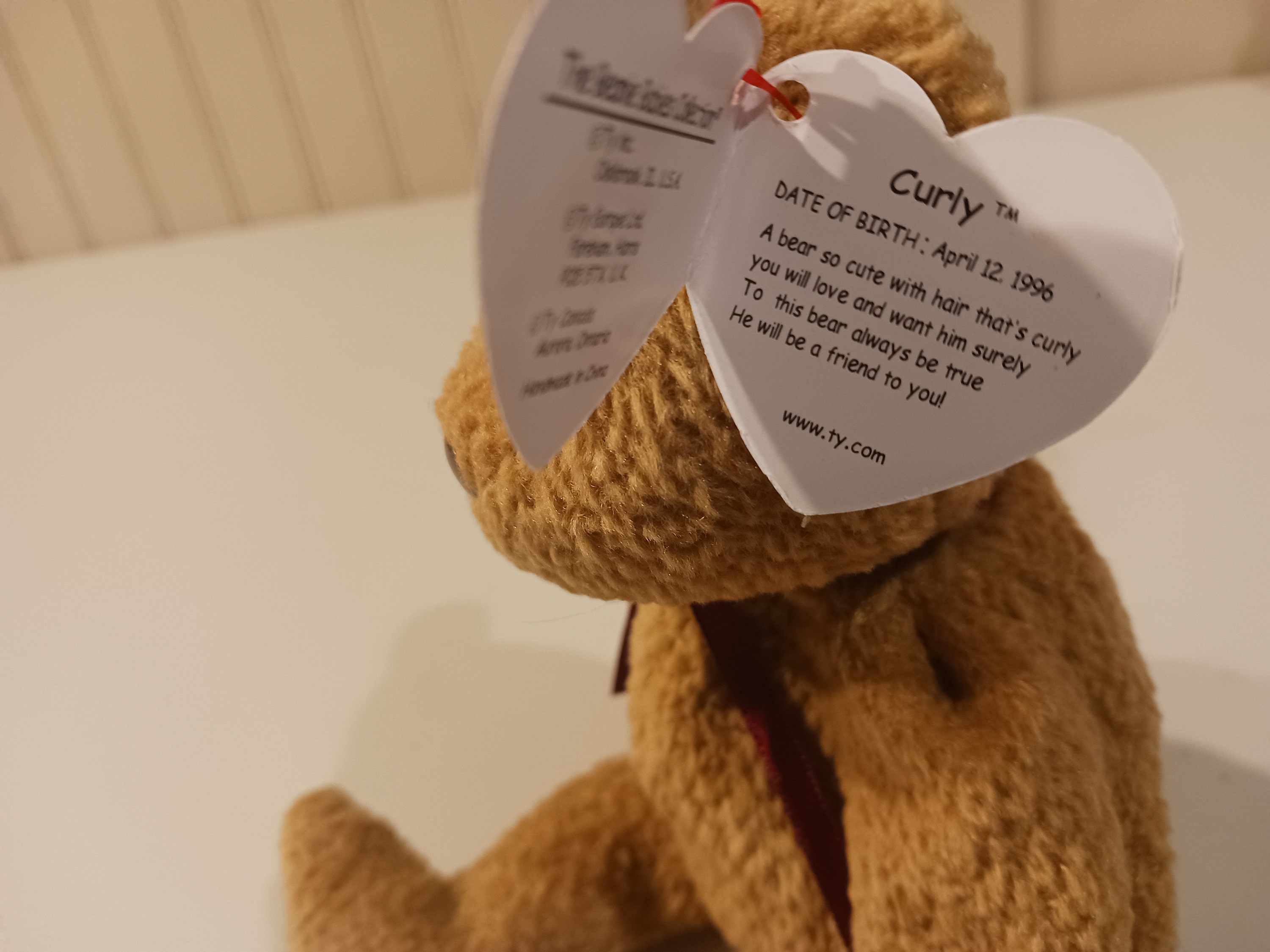 This is Curly the Brown Nappy Beanie Babies Bear. This Curly beanie baby bear is in excellent condition with pristine tags.