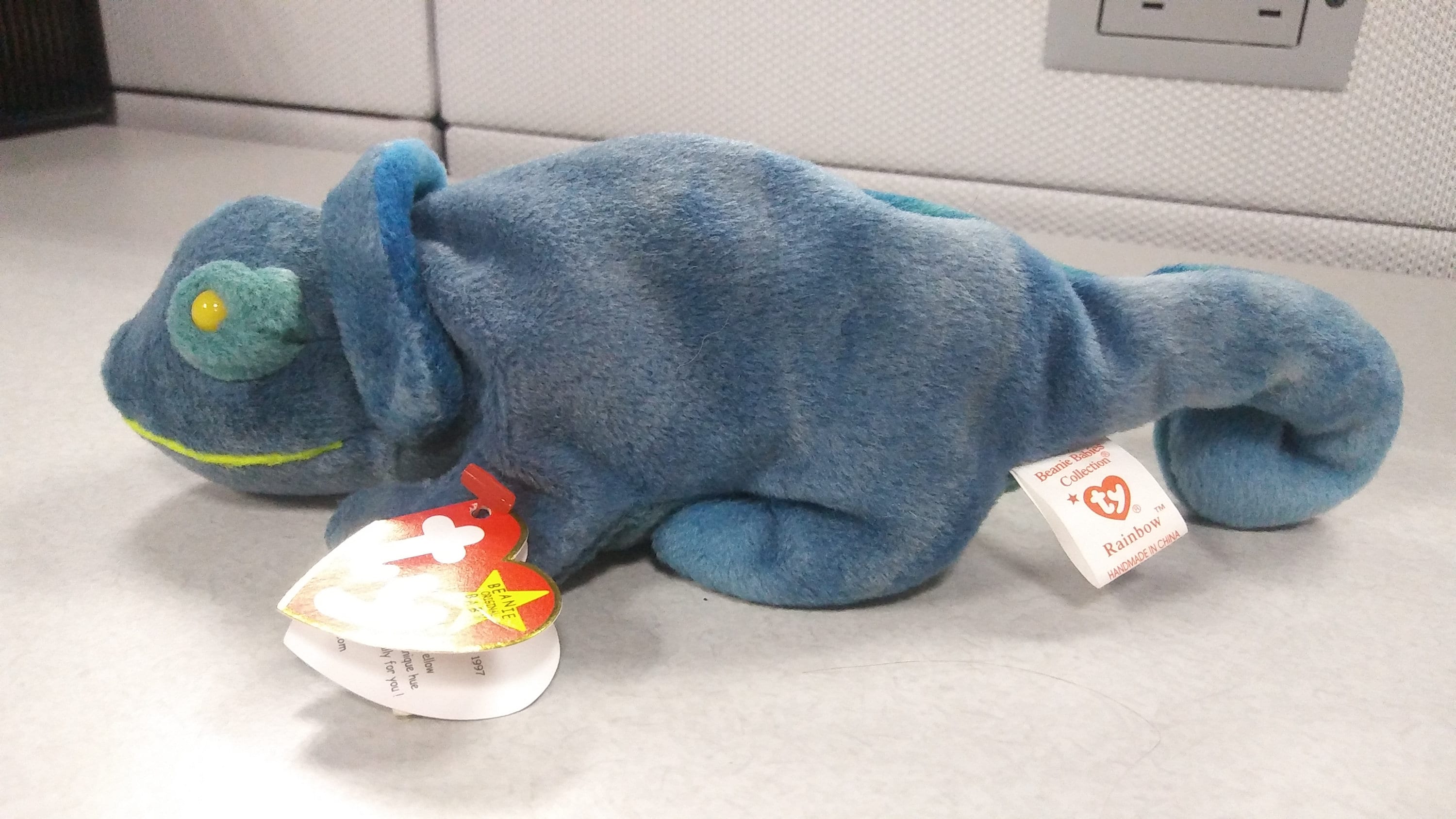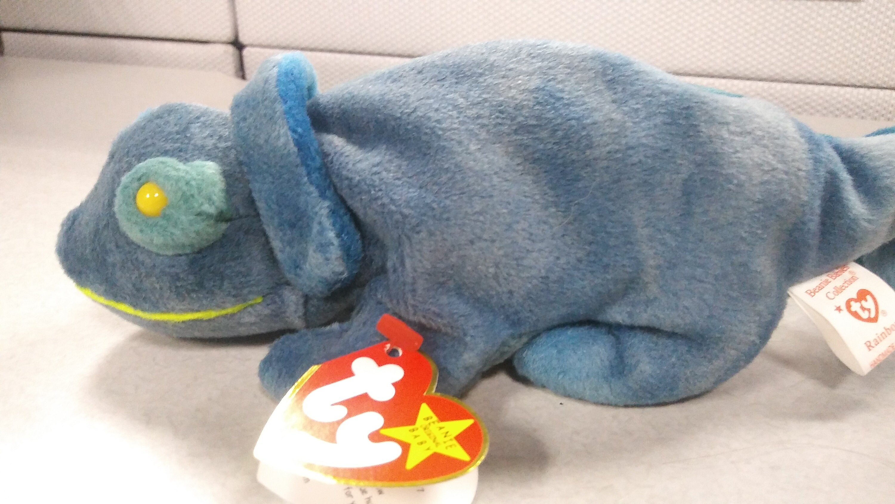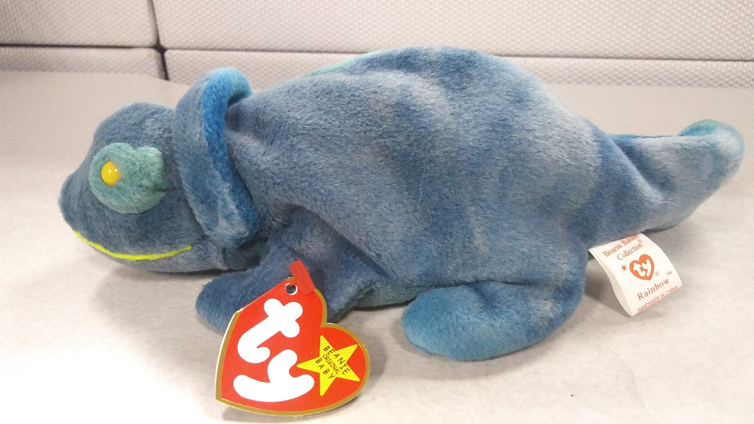 This is Ty Beanie Babies Rainbow the DARK BLUE Iguana. Rainbow is in mint condition, with all tags present and mint. Rainbow also comes in the TYE DYE version, which you'll see in the other listing. I ship same-day WORLD-WIDE. Rainbow comes to you free of rips, stains, odors or tears.